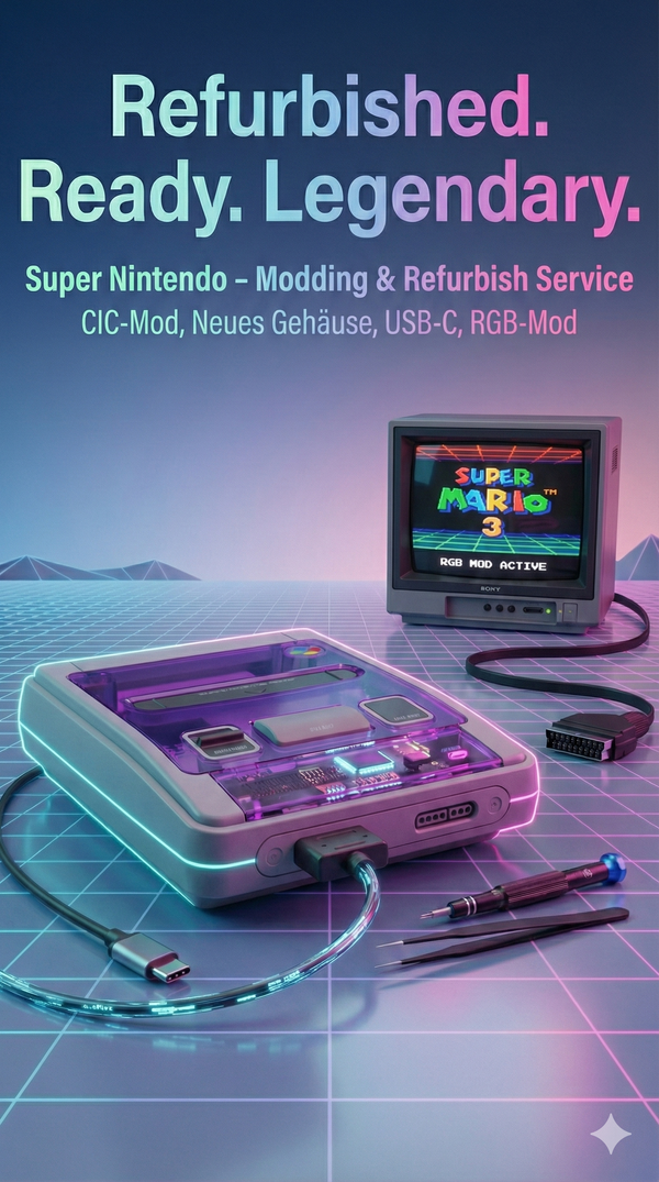Du möchtest deine eigene Retro-Konsole modden lassen? Kein Problem! Mit dem Modding-Service kannst du deine PlayStation 3, GameCube, Dreamcast, PS Vita und viele weitere Geräte zu mir einschicken. Ich übernehme die komplette technische Aufbereitung, Reinigung und den Einbau der gewünschten Upgrades.