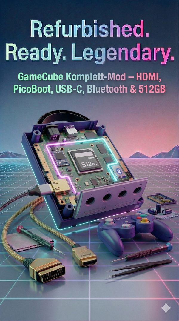 GameCube Komplett-Mod – HDMI, PicoBoot, USB-C, Bluetooth & 512GB