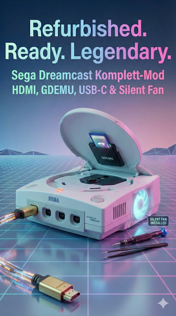 Sega Dreamcast Komplett-Mod | HDMI, GDEMU, USB-C & Silent Fan