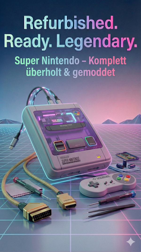 Du willst nicht selbst umbauen? Dann ist Ready to Play genau deine Kategorie! Hier findest du komplett überarbeitete Konsolen – gereinigt, repariert, gemoddet und sofort einsatzbereit.