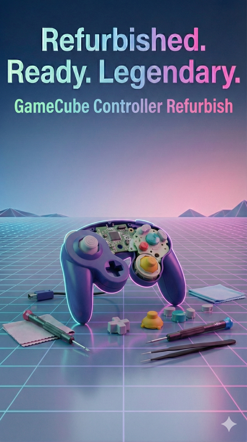 Dein GameCube-Controller ist klebrig, staubig oder einfach... eklig? Kein Wunder – das Teil hat wahrscheinlich das Kinderzimmer der 2000er überlebt. Zeit für eine Generalüberholung! Ich reinige deinen originalen GameCube-Controller gründlich und verpass ihm frische Thumbsticks – damit er wieder aussieht (und sich anfühlt) wie neu.