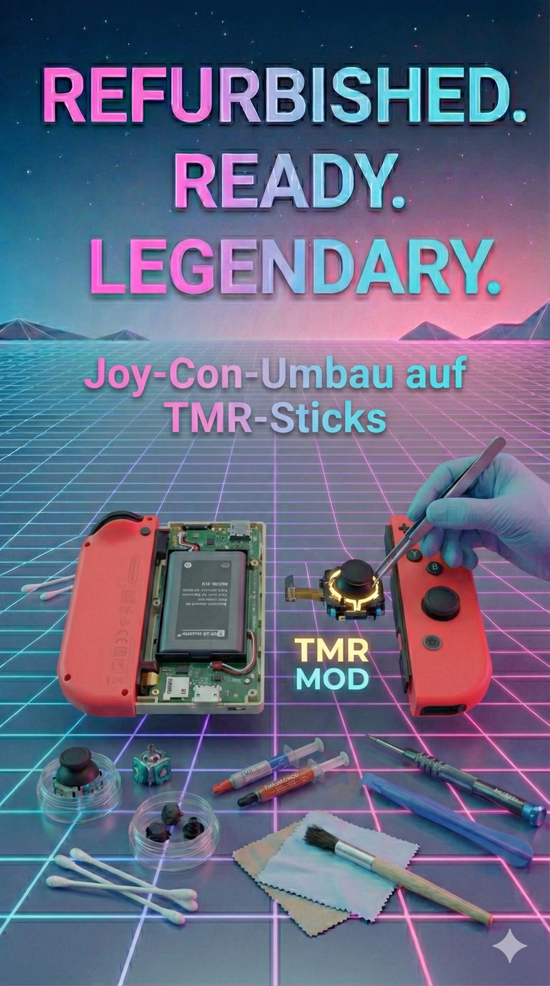 Du hast genug vom Joy-Con-Drift? Mit langlebigen TMR-Sticks gehören defekte Analog-Sticks der Vergangenheit an. Ich tausche beide Sticks deiner originalen Nintendo Switch Joy-Cons professionell aus.