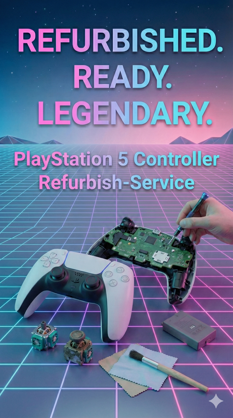 Dein DualSense Controller fühlt sich nicht mehr so frisch an wie früher? Kein Problem! Mit meinem professionellen Refurbish-Service bekommt dein PS5-Controller ein komplettes Makeover – für präzise Steuerung und langanhaltenden Spielspaß.