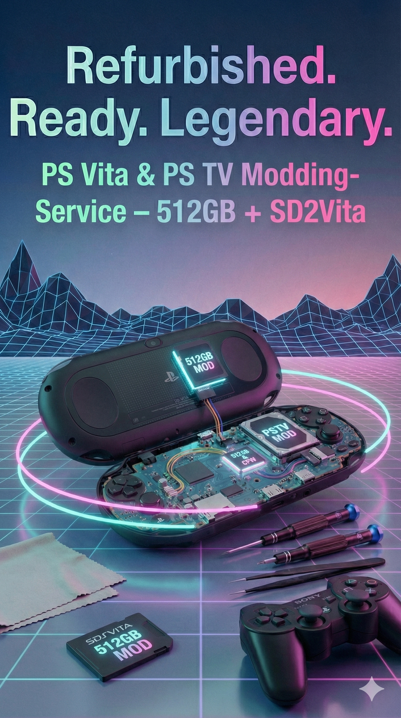 Hol das Maximum aus deiner PS Vita oder deinem PlayStation TV heraus! Mit meinem Modding-Service verwandelst du dein Gerät in eine komplette Retro-Maschine – Homebrews, Emulatoren, PS1-, PSP- und Klassiker-Games, alles sauber strukturiert und sofort startklar.